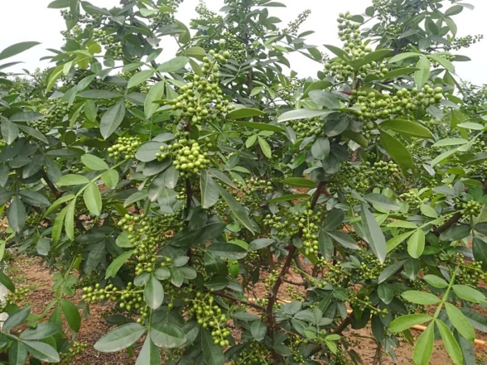 日前,在文通镇灯塔村藤椒基地,漫山遍野的花椒树长势良好、郁郁葱葱,一团团、一簇簇的青花椒缀满枝头,饱满的果实在阳光照耀下油光发亮,空气中弥漫着花椒独有的清香。肉羊养殖基地内,一头头羊儿膘肥体壮,村支部书记蒙绍官正忙着给羊喂食草料。