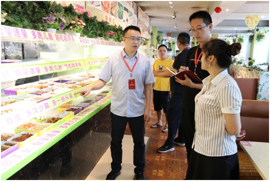 这是盐亭县纪委监委派驻县住建局纪检监察组充分发挥“探头”作用,立足“监督的再监督”,到盐亭县城内多家酒店餐馆开展对盐亭县市场监督管理局“制止餐饮浪费”宣传引导相关工作督导检查,倡导商家通过张贴节约宣传海报、文明就餐标语、服务员主动宣传提醒等方式,引导顾客理性消费、节约用餐的生动场景。在现场,检查组工作人员更耐心详细地向消费者宣传节约理念。