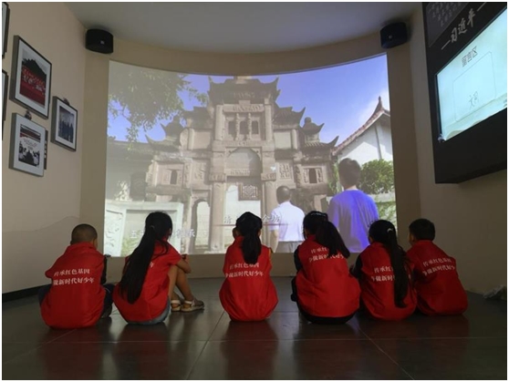 “小小讲解员”观看《清贫太守——文同》专题片(郭寒梅/摄)