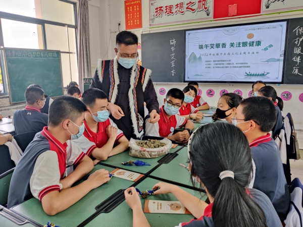 县中羌医医院的医师走进校园,带领学生辨识中药草、体验艾灸、制作中药香囊,让学生们感受中羌医药文化魅力的同时,体会和传承中华传统文化。