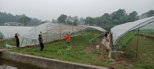 夏日的涪城,万物繁茂。走进新皂镇莲花池村,连片的蔬菜大棚与羊肚菌大棚,在炙热的阳光下格外耀眼。几位村民正在莲花池村党委书记、村主任李小平带领下对羊肚菌大棚进行整修,为下半年大面积种植做好准备。