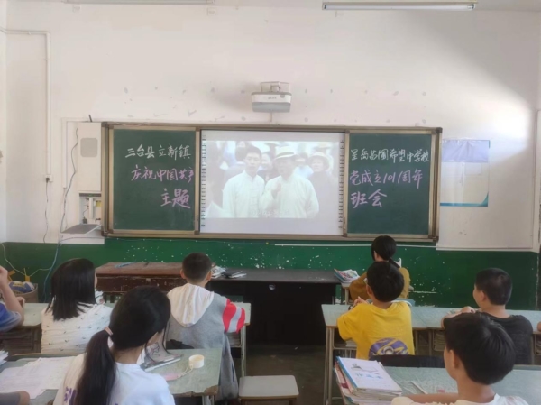 开展主题班会。观红色电影,老师精心挑选红色电影《开天辟地》《小兵张嘎》等,同学们被影片中所展现的英雄事迹感染,被电影中英雄的机智、勇敢的精神所打动。讲红色故事,同学们纷纷上台演讲自己平时看到、听到的红色故事,同学们听得津津有味,也深深体会到幸福生活的来之不易,激发了努力学习做新时代合格接班人的斗志。唱红色歌曲,琅琅上口的歌曲,是记忆深处美好的回忆,它温柔了童年时光,也倾诉着爱党、爱祖国的炽热情感,让红色精神浸润心田。