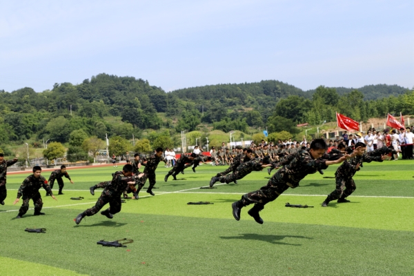 在随后的文艺汇演活动中,各教学部师生带来了精彩的节目:综合部文明风貌展示、大专部民族团结文化展示、机电部工匠精神展示、电子部军事技能展示,师生歌曲串烧、教师旗袍秀、相声、情景剧等,给全校师生带来了一场精彩的视听盛宴。