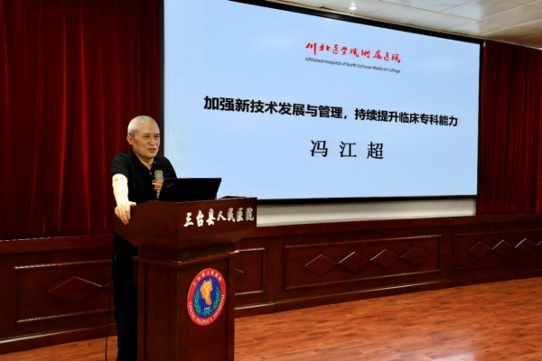 培训会同时邀请了川北医学院附属医院医务部部长冯江超教授以《加强新技术发展与管理,持续提升临床专科能力》为题,从公立医院高质量发展体系、高质量发展新趋势、高质量发展新效能等六个方面,结合多年来医务管理的切身体会进行了分享。