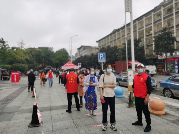 红马甲、白色防护服、温暖且有力的劝导声……在禹龙社区广场、圣灯社区、影剧院爱心便民核酸检测点等多点位,在志愿者与工作人员耐心劝导下,辖区的居民积极配合,佩戴口罩,间隔一米排队,有序完成核酸检测。