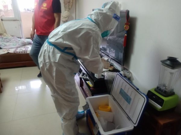 家住永昌镇禹龙社区的李德凤老人因腿脚不便导致长期需要轮椅出行,正当老人担心如何做核酸时,核酸采样人员就已经上了门。在李德凤老人家中,医护人员动作麻利、手法娴熟,在尽量减轻老人不适感的前提下,顺利完成核酸检测采样。李德凤的儿子李远贵说,“我的母亲行动不方便,县上就专门安排了上门做核酸检测,解决了我们的难题。”