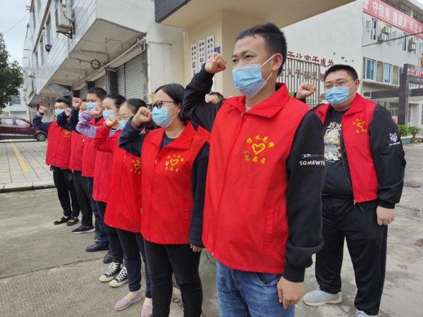 10月2日,石板片区21名党员胸前佩戴党徽,在鲜艳的党旗见证下,庄严地举起了右拳,“我是党员我先行,疫情防控做先锋!”掷地有声的承诺,响彻石板上空。