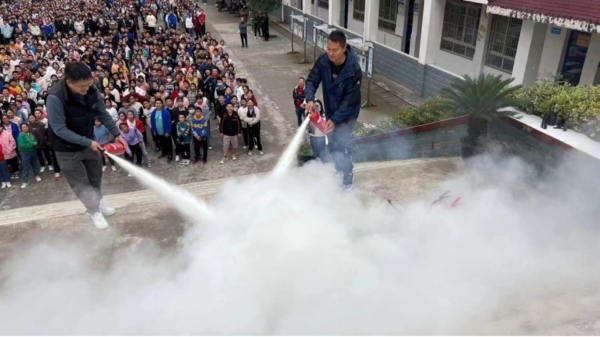 到达安全区域,各班清点好人数后,消防员现场为师生讲解了灭火器的正确使用方法及注意事项,并抽取了部分老师和学生现场演示灭火器的使用。消防员还给全校师生进行了消防安全培训,普及了消防安全知识,进一步增强了师生的消防安全意识。(供稿:三台县塔山中学 杨涛)