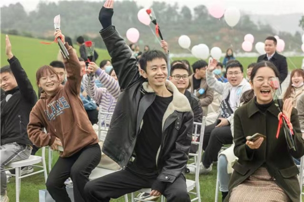 在现场活跃的气氛中,青年们交流感情,结识志趣相投的朋友,还有多对男女青年通过互赠玫瑰确定对方为心仪对象,成功牵手。