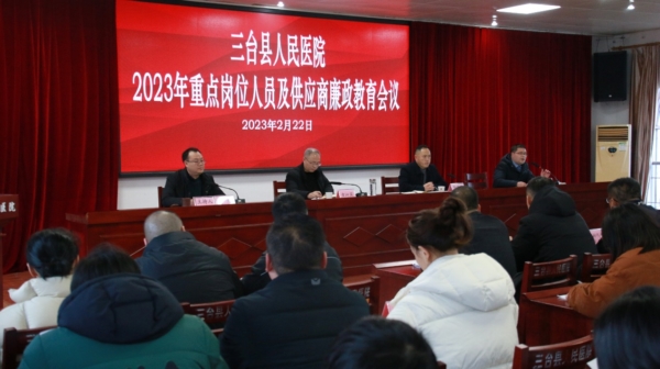 四川新闻网消息 为进一步加强医院党风廉政建设和行风建设工作,构建良好、健康、可持续的“亲清”医商关系,2月22日下午,三台县人民医院召开2023年重点岗位人员及供应商廉政教育会。