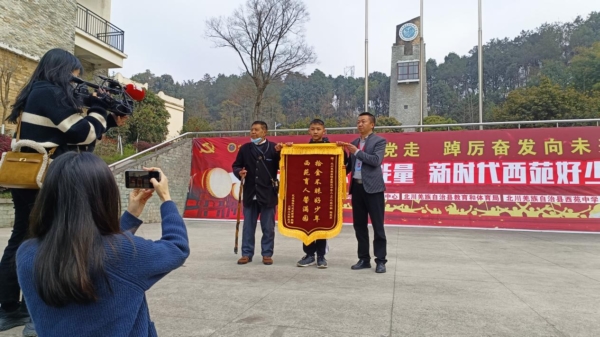 四川新闻网消息 拾金不昧是中华民族的传统美德。3月13日上午,在北川西苑中学升旗仪式上,一位拄着拐杖的老人带着一面锦旗来到舞台,亲自把锦旗送给捡拾他存折和现金的学校及学生陈光华手中,并深表感谢。