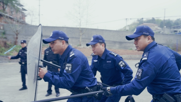 在情景模拟警情处置环节,围绕执法规范化理念,通过实景、实兵、实战模拟警情,以“红蓝对抗”的方式开展现场处置演练。