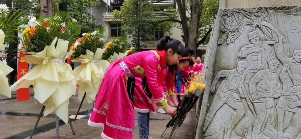 参加活动人员整衣脱帽,向为祖国和人民英勇献身的烈士默哀致敬,少先队员代表齐唱《我们是共产主义接班人》。全体人员向烈士纪念碑行鞠躬礼,敬献鲜花,表达对先烈的深切哀悼与敬仰之情,仪式结束后,红色宣讲团成员刘福元为少先队员宣讲了红色故事。
