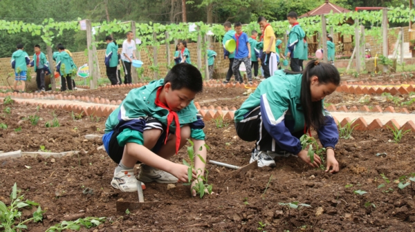 据了解,该校有一大块空地多年杂草丛生,一直未得到有效规划和利用。去年7月,在北川县教体局和当地党委政府的关心下,在爱心企业的支持下,该校党支部决定开垦一块劳动实践基地。全体教师群策群力、建言献策,寻土、运土、平地、设计、美化,老师带着孩子们在劳动课上捡石、挖地、播种、育苗、栽树……短短几个月时间,在师生共同参与下,劳动实践基地正式投入使用。
