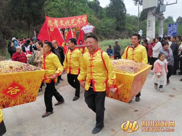 四川新闻网消息(刘玉明 记者 杨宗友 摄影报道) “忠孝农耕,天地呈祥,三月来祈福,龙狮皆欢唱……”4月22日,恰是农历三月初三,绵阳市三台县忠孝乡举行“三月三”民俗文化节活动,上万名群众和大鼓社、舞狮团、舞龙团、腰鼓队、打三鞭等民俗巡游队用极具本土特色的民俗服装、民乐、化妆巡游,生动地诠释了忠孝文化。