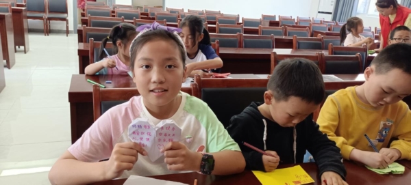 活动现场,志愿者为孩子们介绍了“母亲节”的由来,并用温暖的话语教导孩子要秉持一颗感恩的心,学会感恩父母,引导孩子用歌声表达对妈妈的爱。随后,孩子们在志愿者的带领下动手折叠纸爱心,并在纸爱心上写下心里想对妈妈说的话。