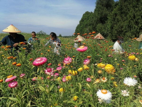 如今,昔日的荒山成了一片七彩斑斓的乡村花海,刘小英的家庭农场也成了集生态观光、绿色休闲旅游为一体的家庭农场,吸引众多摄影爱好者前来打卡,同时开发出七彩菊花茶、刺梨果酒等产品,创建了“梓州知南”品牌,辐射带动了建平镇农旅融合产业发展。