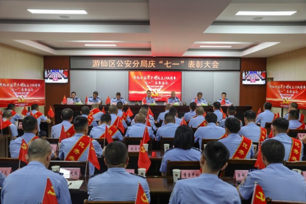 四川新闻网消息 6月29日,绵阳市公安局游仙区分局举行“学思想、强党性、重实践、建新功”主题党日活动,以及“七一”表彰、“我是党课主讲人”等系列党建活动,传承红色基因。