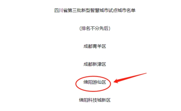 游仙区入选四川省第三批新型智慧城市试点城市