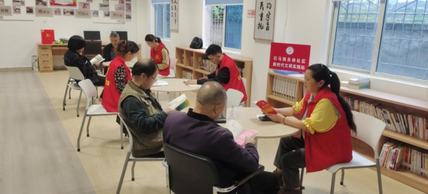 在东林社区的图书室,大家纷纷拿起自己感兴趣的书籍,坐下来静静地阅读。有的阅读乡村旅游方面的书籍,有的学习健康养生类的知识,大家沉浸在知识的海洋里。