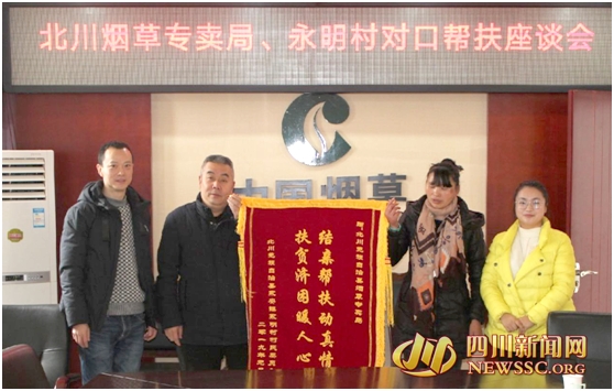 四川新闻网绵阳5月8日讯(王宗杰 记者 杨全春)“永明村254户、658名群众永远铭记北川烟草专卖局的恩情,感谢贵局对永明村的大力关怀和帮助。”2019年1月22日一大早,北川羌族自治县永安镇永明村村主任将一面写有“结亲帮扶动真情、扶贫济困暖人心”字样的锦旗交至北川烟草扶贫小组成员手中。
