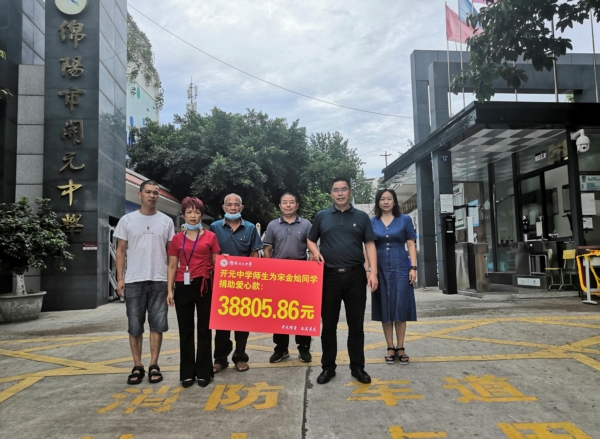据悉,宋金灿是绵阳开元中学高一4班学生,7月13日突感胸痛,经查,确诊为突发心肌炎,有性命之忧。其60岁的父亲也有多年的心脏病史,待病家中,巨额的治疗费用对于这个本不富裕的家庭而言,无异于天文数字。王校长获悉宋金灿家里的情况后,安排部署学校工会紧急动员全校师生员工发扬开中“一方有难,八方支援”的团结奋斗精神,通过“水滴筹”、微信和现金等方式积极筹措善款。