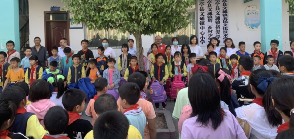 雷秋芬代表医院向家庭困难的50余名学生,送上了一份节日的祝福,向他们每人赠送了一套书包、笔记本等学习用品。