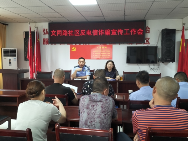 为进一步加大社会面防范电信网络诈骗的宣传力度,提高广大群众的防范电信诈骗意识。文同社区和县公安局森林警察大队结合辖区实际情况,对不同群体进行分类,点对点开展针对性宣传工作,重点对辖区留守老人、家庭妇女、学生易受骗群体进行“地毯式”派发宣传资料、召开座谈会、以案说法等形式,对目前较多发的电信网络诈骗手段进行分析,向群众详细讲解了最新的网络兼职刷单、网上刷信誉、冒充熟人网上借钱、冒充学校老师、冒充“公检法”等电信网络诈骗手段和伎俩,提高群众防范、应对电信诈骗的意识和能力。