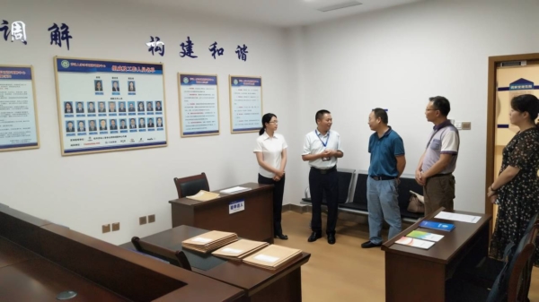 随后,敬建波一行到达中国(绵阳)科技城人力资源服务产业园劳动人事争议调解中心进行参观学习,从调解组织阵地建设、人员配备和调解工作效能等方面进行了深入的学习交流和探讨。