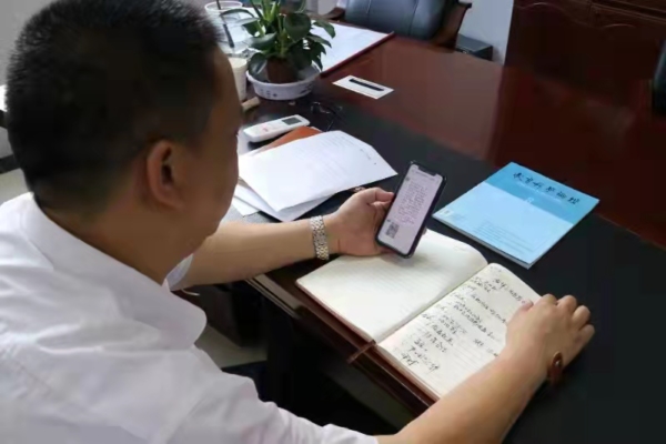 盐亭县岐伯实验小学校长任红艳正在查看教师节廉洁提醒短信 花明月/摄
