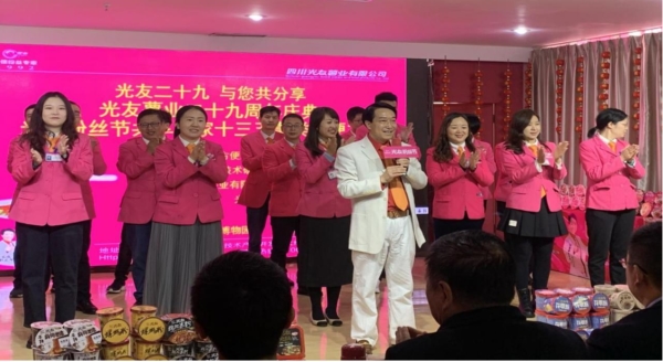 在上午活动进行之后,光友薯业特别为员工与到场嘉宾准备了“坝坝宴”。与大家一起品尝光友美味,共享心中喜悦。邹光友携手光友薯业各级主管一同发表心中对于光友薯业的美好祝愿,与到场来宾一齐举杯共同祝愿光友美好明天。