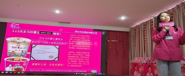 活动现场,光友薯业产品经理赵佳向嘉宾们分享光友国家十三五方便主食成果,并详细介绍薯类主食的益处。