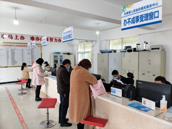 在永泰镇便民服务中心大厅,各个窗口工作人员正在耐心接待办事群众。该中心于2020年建成投入运行,下设一个服务站和13个便民服务室,实现服务网点全覆盖,彻底解决了服务群众“最后一公里”问题。中心现已入驻政务服务事项139项,入驻自然资源所、司法所、市场监管所等3个县级派驻机构。中心服务全镇2.5万余群众,年办理事项约2.8万余项。
