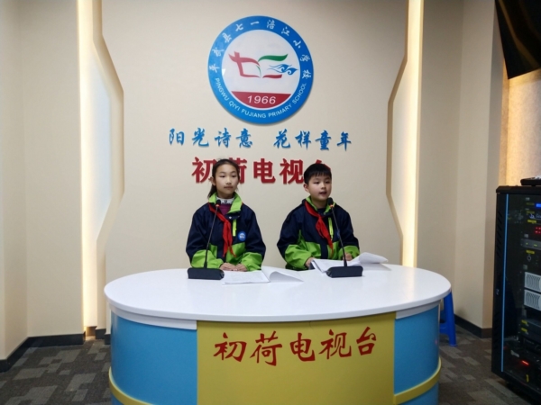 在七一涪江小学的“初荷”电视台,小主持人通过前期的充分准备与综合训练,以大方得体、严谨认真的主播形象出现在全体师生面前,用规范流畅的语言向全校师生讲述了邓小平在法国勤工俭学的故事,在有条不紊、声情并茂的播报中,将“廉洁之声”播撒在校园的每一个角落。