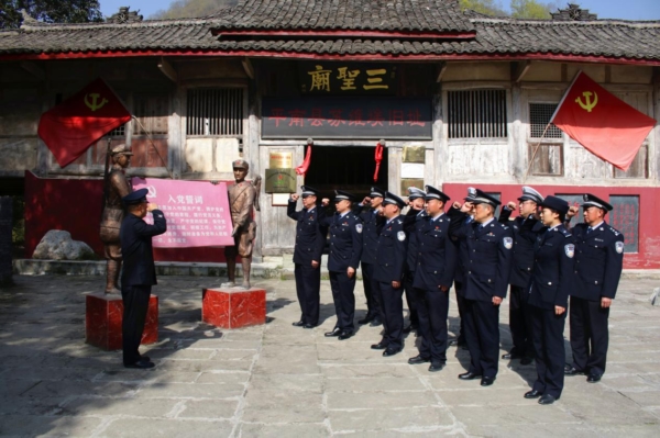 传承“红色基因”。定期举行入党、入警宣誓仪式,由老党员为新入警和新入党的同志讲授专题党课,口述革命历史、讲述红色故事,引导青年干警爱岗敬业、无私奉献,让初心薪火相传、把使命勇担在肩。
