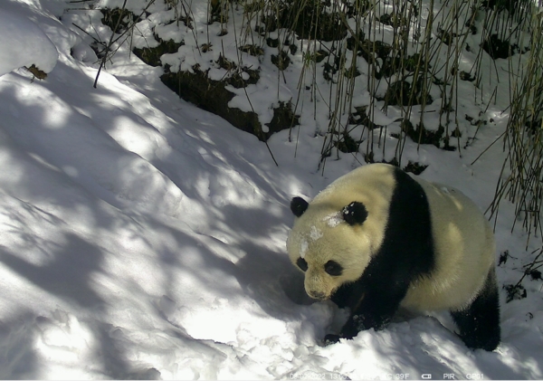 红外相机在木座藏族乡和平村社区保护地拍到的野生大熊猫画面