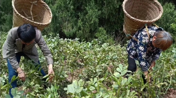 四川新闻网消息(陈元松 记者 杨宗友)4月27日上午11时许,在盐亭县西陵镇石道场村的一大片绿油油的胡豆地里,一群大妈、太婆正忙着采摘嫩胡豆角,一个个热的汗流浃背。