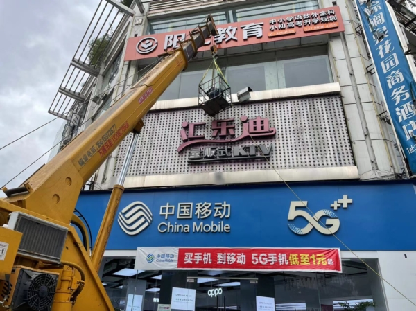 执法人员正在拆除不合规广告牌