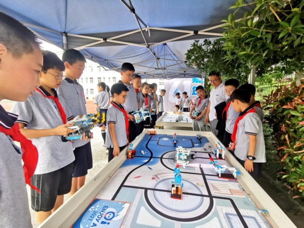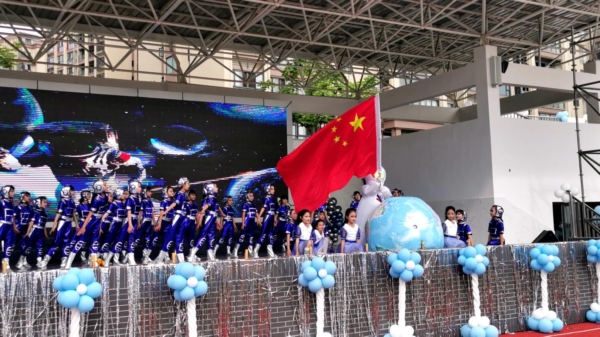 “六一”庆祝活动在校长陈九龄的致辞声中正式拉开帷幕。新少先队员在大队辅导员龙佳的带领下举起右拳在队旗下庄严宣誓。综合文艺展演分为筑梦·萌心芽、融梦·乐童年、追梦·享成长、赞梦·向未来四个篇章,孩子们用歌舞情景剧、配乐朗诵、课本剧等形式多样的节目展现了阳光向上的精神风貌。科技情景歌舞《星际同梦》更是在欢乐的海洋中放飞了科技的梦想。在庆祝活动上,还为在2021世界机器人大赛总决赛——青少年机器人设计大赛ENJOY AI赛项暨ENJOY AI2021总决赛中获得一等奖的12名选手,获得二等奖的6名选手举行了颁奖仪式。