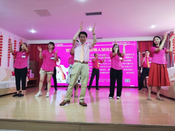 活动现场,邹光友对现场嘉宾的到来表示热烈欢迎,并邀请现场嘉宾和线上直播间的观众,共跳光友健身舞《光友薯业我的家》和光友歌舞二部曲、光友动感体操第一部曲,把健康、快乐送给每一个人。