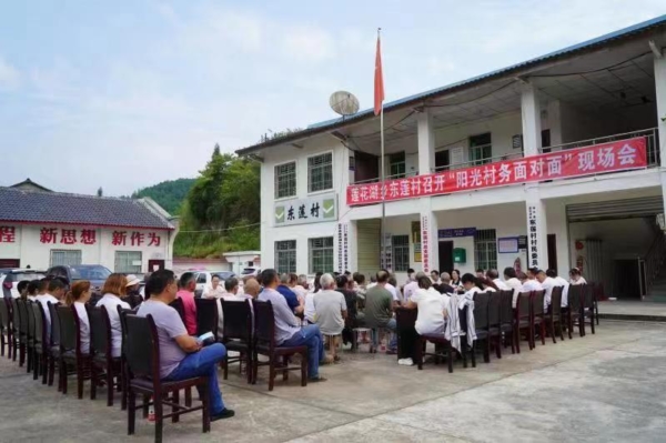 这是今年莲花湖乡在东莲村开展第三季度“阳光村务面对面”坝坝会现场的一幕。35名村民代表围绕集体经济发展、基础设施建设、惠民惠农政策落实等方面“出题”,乡镇纪委、社会事务办、农业服务中心等相关职能部门以及全乡10个村(居)支部书记组成答题团,通过“点对点”的方式解决群众反映强烈的突出问题,回应群众期盼。