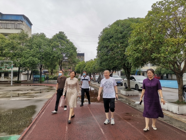 邓山鹰一行对学校的疫情防控物资、学校安全、校园环境、开学教育教学准备等工作进行实地考察,并听取了学校党支部书记、校长李绍清的工作汇报。假期里,学校对附属幼儿园进行了全面升级改造,新建戏水区、玩沙区,以全新的面貌迎接国检。并对学校食堂环境进行了升级、对部分厨房设备进行了更换。看到这些变化,邓山鹰对黄土镇小学的开学准备工作给予了充分肯定。