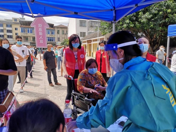 区委宣传部组织机关党员志愿者助力特殊人群核酸检测