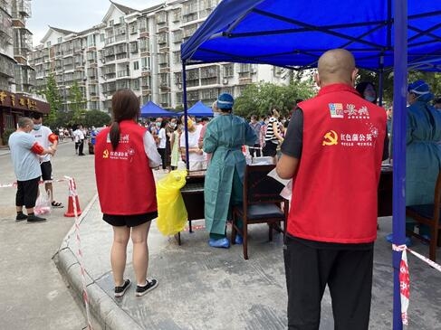 在核酸检测点内,党员志愿者身穿红马甲,维护现场秩序,耐心地为前来核酸采样的群众解释答疑,指导和帮助群众操作手机录入信息,提醒群众戴好口罩,指引群众到指定的采样通道。他们始终用善意和爱心挑起疫情防控中的重担,确保核酸检测工作平稳、有序、高效推进。他们用实际行动践行了“我为群众办实事”,一心为民显担当,得到了广大群众的认可。