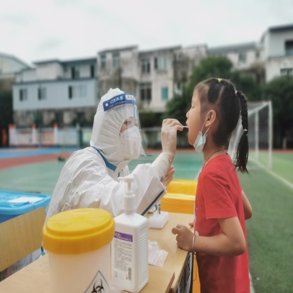 此次核酸检测,界牌小学共设置了2处检测点,12名工作人员有序组织全体师生参与核酸检测。检测现场,参检人员排着整齐的队伍,全程佩戴口罩,自觉间隔1米,在工作人员的协调指挥下,井然有序排队等候检测。采集信息人员、医务人员身穿防护装备,严格按照要求规范操作进行咽拭子核酸采样。整个流程操作安全规范、防护到位、高效有序。(供稿:界牌镇小学 夏莹)