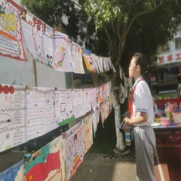 此次展示内容丰富,形式多样,别具一格,天马行空,充分展现了孩子们的想象力。作品分别有“创意画”“手抄报”“劳动实践”“手工作业”等。同学们在各班主任的带领下,有秩序地参观,整个参观过程,同学们兴致高昂,边看边议论,发出声声赞叹。
