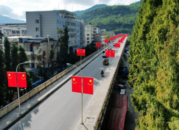 绵阳平武:小城飘扬“中国红” 喜迎国庆氛围浓