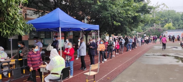 干部下沉一线。组织镇村干部、民兵、民警、志愿者等下沉核酸检测一线,积极配合医务人员,协助开展信息采集、现场维护等工作,实现全员核酸检测“加速度”。
