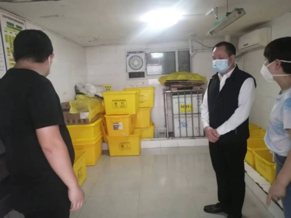 加强巡查城区二甲以上医院、各乡镇卫生院、小区采样点、亦民宸、维也纳、时光景悦、泰丰源等隔离点和核酸采集点的医废收集、暂存、处置,要求各点位医废须做到人走场清,分类收集,日产日清。