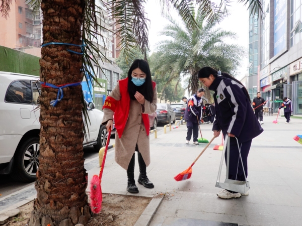 志愿服务活动中,党员和团干带领同学们开展清洁环境服务活动并向社区居民分发《生活垃圾分类知识宣传》《森林草原防火知识宣传》倡议书,主动分享生活垃圾分类技巧,引导大家参与低碳环保活动。志愿者们对花荄镇五路口荣华国际广场、学校周边街道、摊点和墙体张贴物进行了打扫清理。分走在街道各个角落,他们将广场喷泉池里的垃圾、地上的烟头以及草丛里不显眼的小垃圾清理出来。